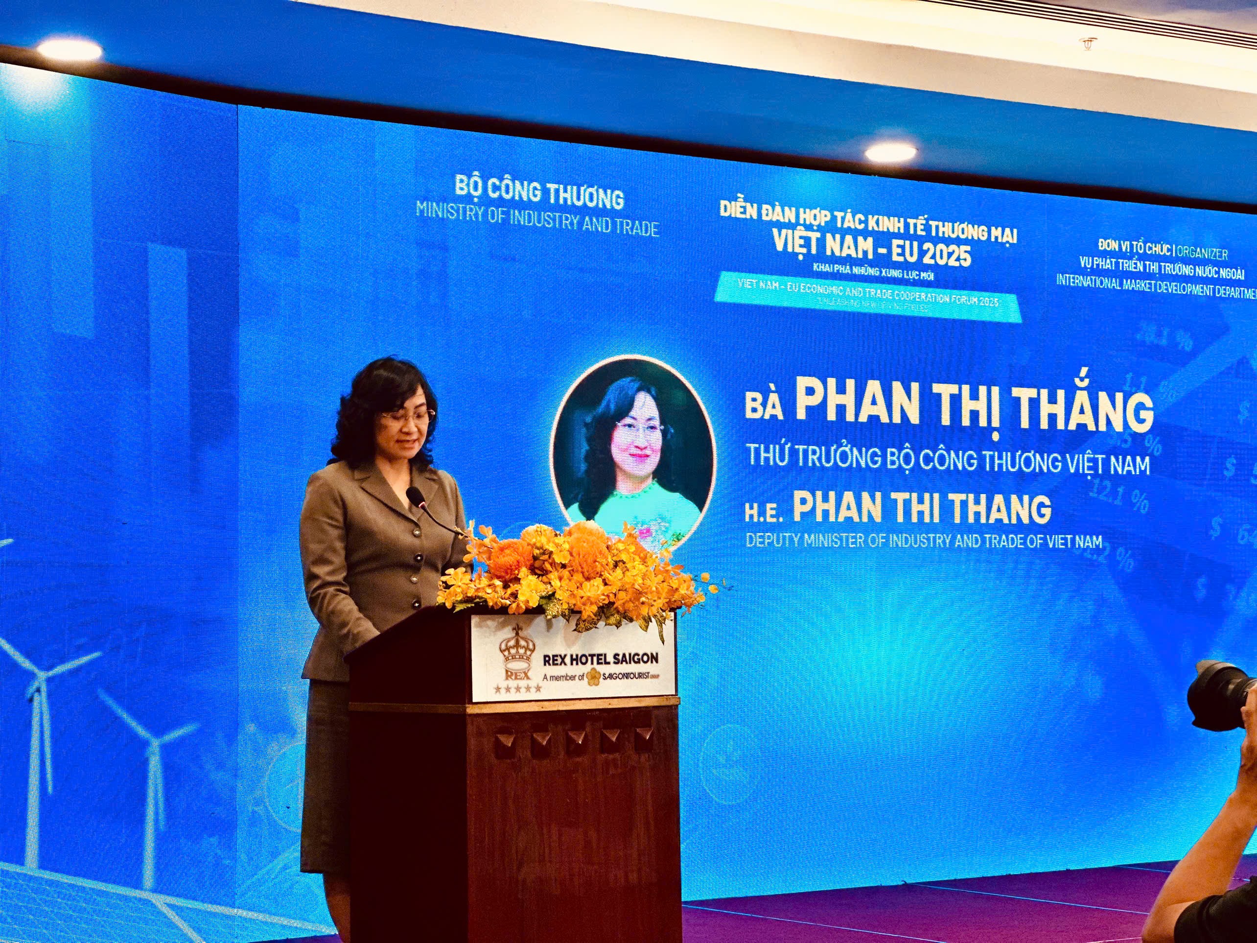 Chủ trì và phát biểu khai mạc sự kiện, Thứ trưởng Bộ Công Thương Phan Thị Thắng đặc biệt ghi nhận kết quả tăng trưởng và những chuyển dịch tích cực trong hợp tác kinh tế thương mại Việt Nam – EU sau cột mốc 5 năm Hiệp định EVFTA đi vào hiệu lực, bất chấp biến động thị trường, chuỗi cung ứng, hoạt động giao thương và kinh tế toàn cầu đối mặt với nhiều khó khăn. Nhấn mạnh vai trò của Hiệp định, Thứ trưởng cho biết EVFTA không chỉ góp phần thúc đẩy giao thương, đa dạng hóa thị trường, mà quan trọng hơn còn hỗ trợ chuyển đổi cơ cấu kinh tế, cải cách thể chế, cải thiện môi trường kinh doanh, đầu tư và mở rộng hợp tác với EU trong những lĩnh vực mới mà hai Bên cùng quan tâm như kinh tế xanh, kinh tế số, chuyển đổi năng lượng, phát triển bền vững… Đây là những lĩnh vực thế mạnh và trọng tâm trong chính sách của EU, đồng thời phù hợp với xu hướng phát triển hiện nay, cũng như định hướng chiến lược phát triển kinh tế – xã hội của Việt Nam.
